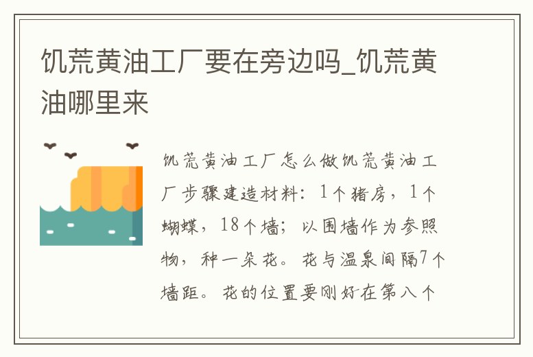 饑荒黃油工廠要在旁邊嗎_饑荒黃油哪里來