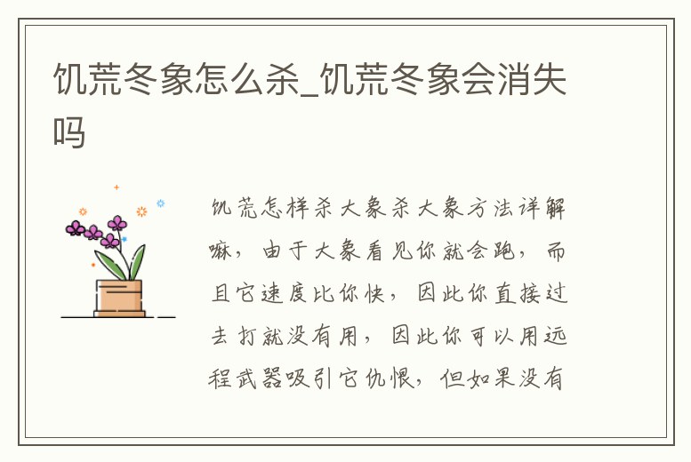 饑荒冬象怎么殺_饑荒冬象會消失嗎