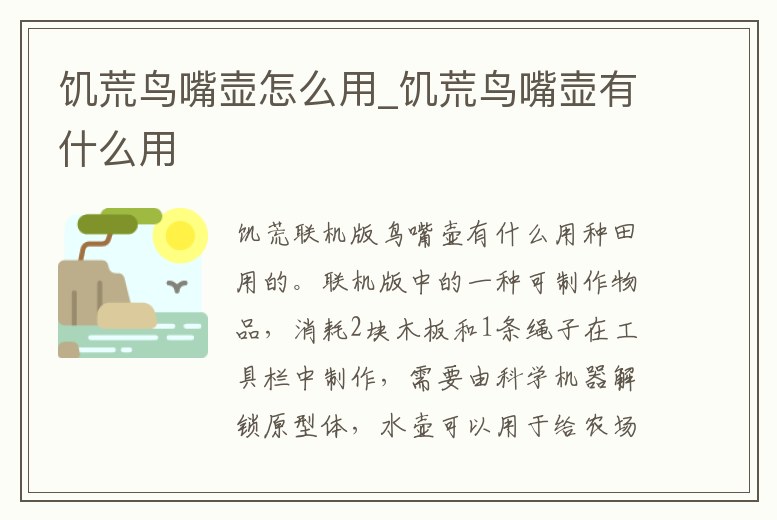 種田用的。聯機版中的一種可制作物品,消耗2塊木板和1條繩子在工具欄中制作,需要由科學機器解鎖原型體,水壺可以用于給農場土壤地皮澆水。