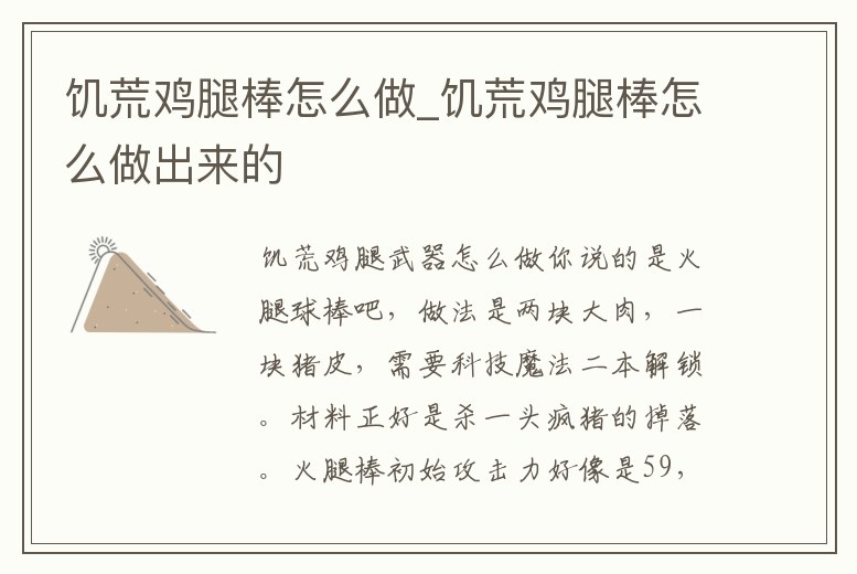 饑荒雞腿棒怎么做_饑荒雞腿棒怎么做出來的