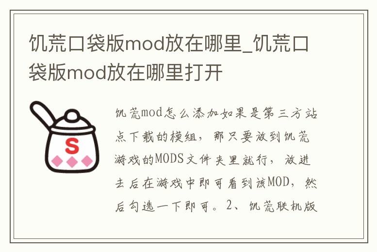 如果是第三方站點下載的模組,那只要放到饑荒游戲的MODS文件夾里就行,放進去后在游戲中即可看到該MOD,然后勾選一下即可。