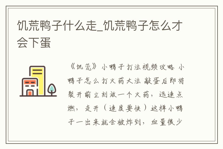 饑荒鴨子什么走_饑荒鴨子怎么才會下蛋