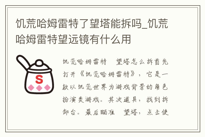 饑荒哈姆雷特了望塔能拆嗎_饑荒哈姆雷特望遠(yuǎn)鏡有什么用