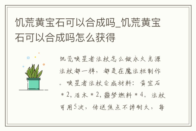 饑荒黃寶石可以合成嗎_饑荒黃寶石可以合成嗎怎么獲得