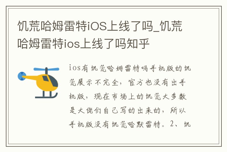 手機版的饑荒展示不完全,官方也沒有出手機版,現在市場上的饑荒大多數是大佬們自己寫的出來的,所以手機版沒有饑荒哈默雷特 。