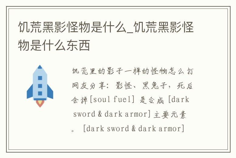 網友分享:影怪、黑兔子,死后會掉[soul fuel] 是合成 [dark sword & dark armor]主要元素。 [dark sword & dark armor]是擊敗影怪的必需裝備,但會出現快速降低精神值的負面效果。所以沒啥事的話就不要穿著這套裝備到處晃,會。