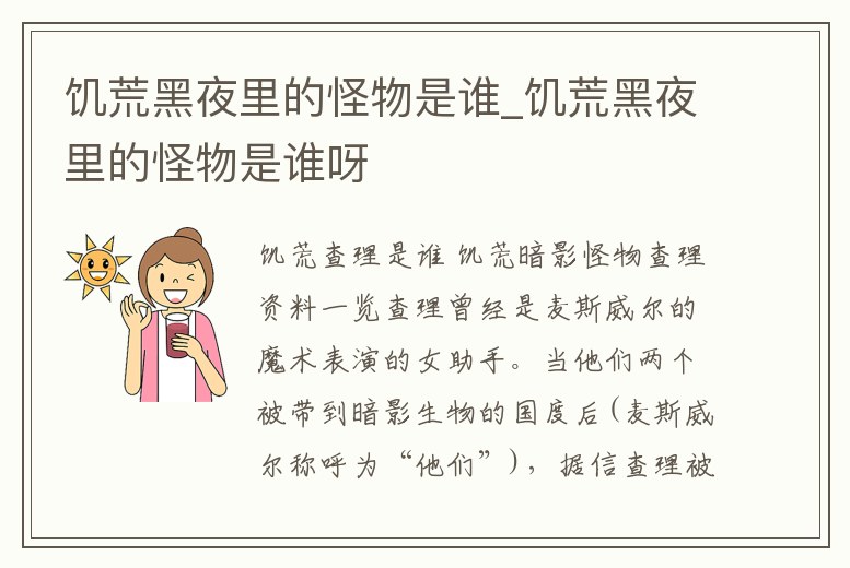 饑荒黑夜里的怪物是誰(shuí)_饑荒黑夜里的怪物是誰(shuí)呀