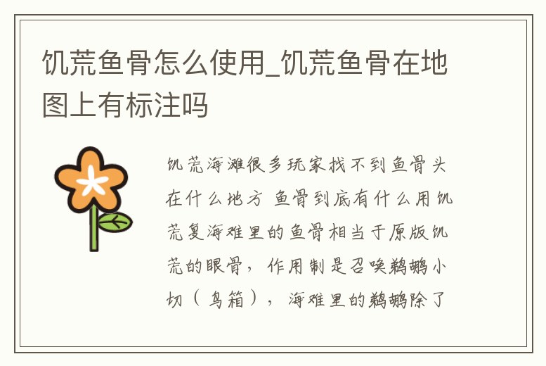 饑荒魚骨怎么使用_饑荒魚骨在地圖上有標注嗎