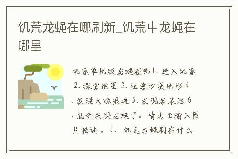 1.進(jìn)入饑荒 2.探索地圖 3.注意沙漠地形 4.發(fā)現(xiàn)火燒痕跡 5.發(fā)現(xiàn)巖漿池 6.就會(huì)發(fā)現(xiàn)龍蠅了。請(qǐng)點(diǎn)擊輸入圖片描述 。
