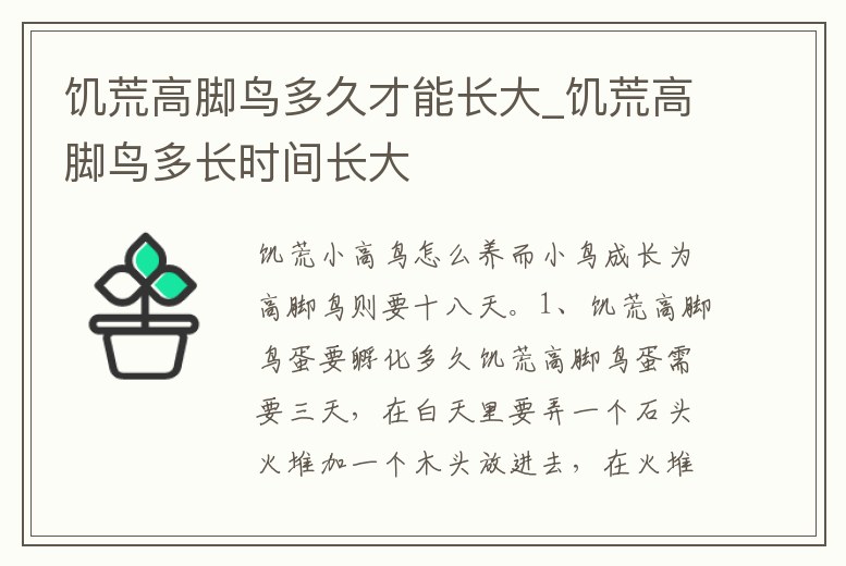 饑荒高腳鳥從孵化到養成31天,長為成年高腳鳥,這個時候高腳鳥就會背叛玩家了運氣好的直接離開就是了,運氣差的話還很有可能會攻擊角色,這也是建議一次性只養一個的主要原因。如果多養幾個,叛變的時候就有的受,這就。