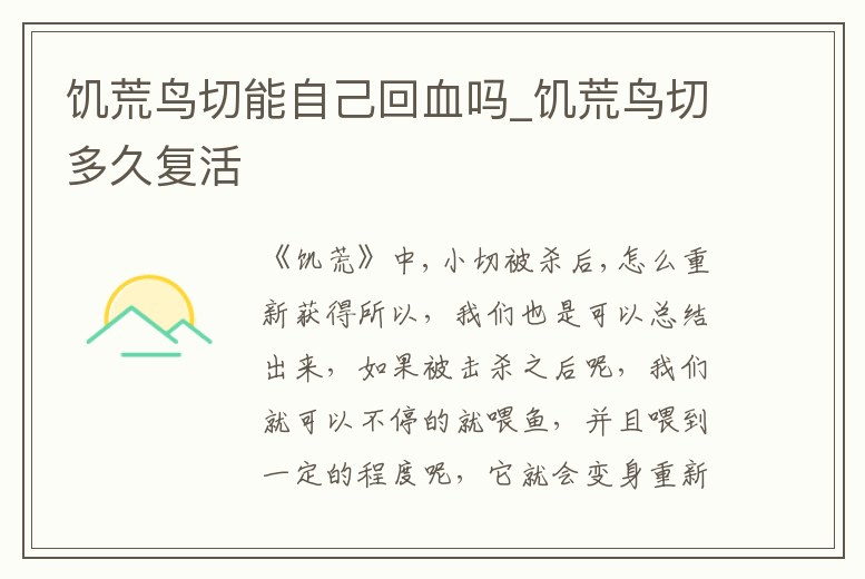饑荒鳥切能自己回血嗎_饑荒鳥切多久復(fù)活