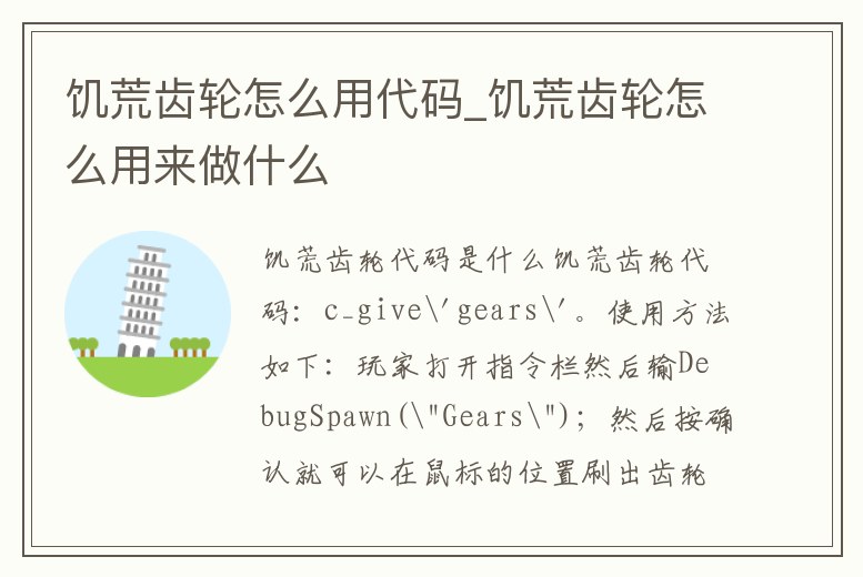 饑荒齒輪怎么用代碼_饑荒齒輪怎么用來做什么