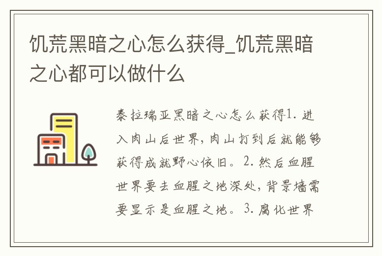 饑荒黑暗之心怎么獲得_饑荒黑暗之心都可以做什么