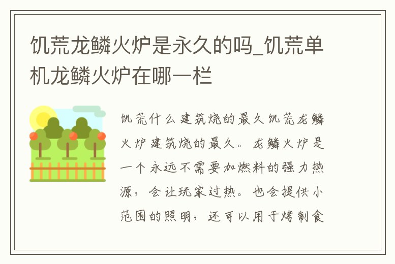 饑荒龍鱗火爐是永久的嗎_饑荒單機(jī)龍鱗火爐在哪一欄