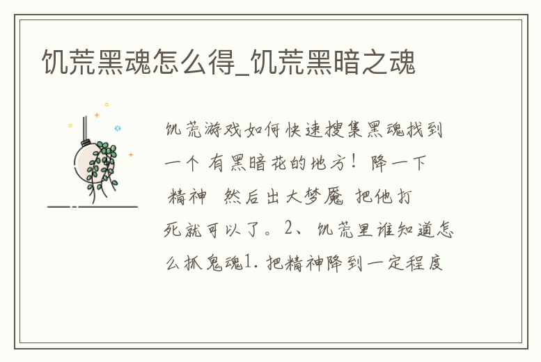 饑荒黑魂怎么得_饑荒黑暗之魂