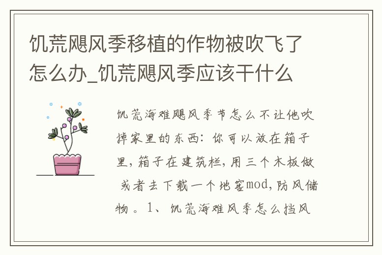 饑荒颶風季移植的作物被吹飛了怎么辦_饑荒颶風季應該干什么
