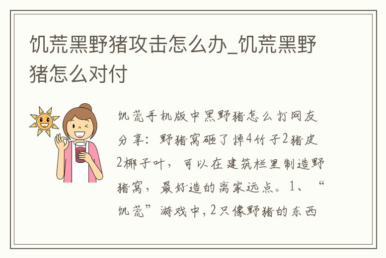 饑荒黑野豬攻擊怎么辦_饑荒黑野豬怎么對付