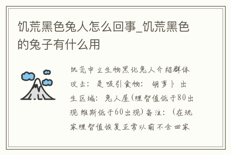 饑荒黑色兔人怎么回事_饑荒黑色的兔子有什么用