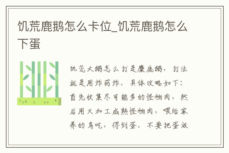 饑荒鹿鵝怎么卡位_饑荒鹿鵝怎么下蛋
