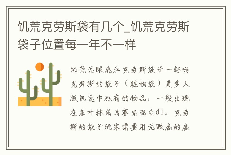 - 饑荒克勞斯袋有幾個(gè)_饑荒克勞斯袋子位置每一年不一樣
