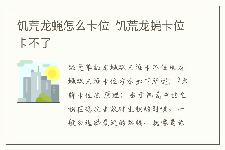 饑荒龍蠅怎么卡位_饑荒龍蠅卡位卡不了