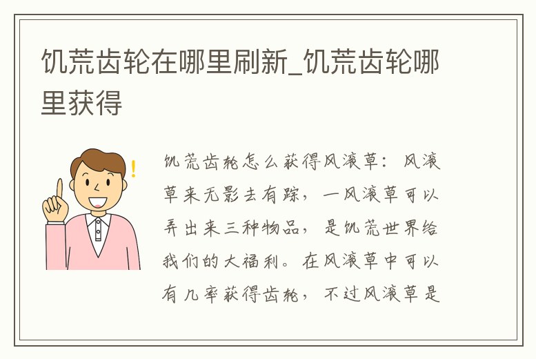 饑荒齒輪在哪里刷新_饑荒齒輪哪里獲得