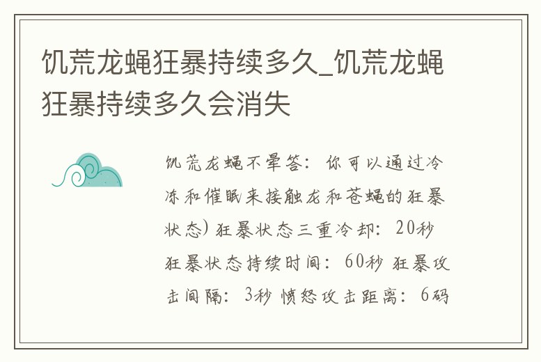 饑荒龍蠅狂暴持續多久_饑荒龍蠅狂暴持續多久會消失