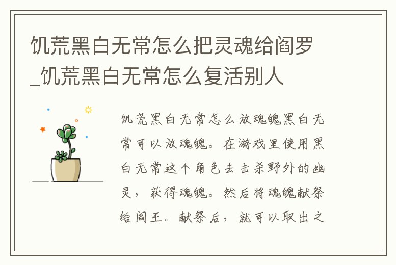 饑荒黑白無常怎么把靈魂給閻羅_饑荒黑白無常怎么復活別人