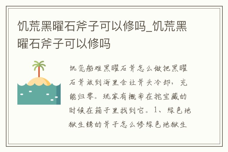 把黑曜石斧放到海里會讓斧頭冷卻,充能歸零。玩家有概率在挖寶藏的時候在箱子里找到它。