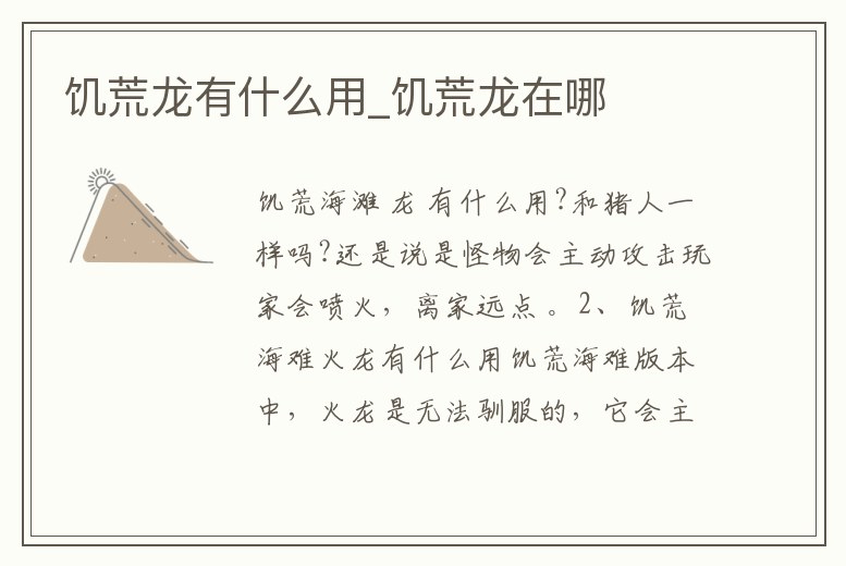 饑荒海灘 龍 有什么用?和豬人一樣嗎?還是說是怪物會主動攻擊玩家