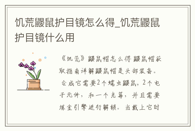 饑荒鼴鼠護目鏡怎么得_饑荒鼴鼠護目鏡什么用