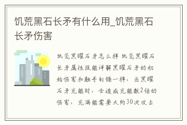 饑荒黑石長矛有什么用_饑荒黑石長矛傷害