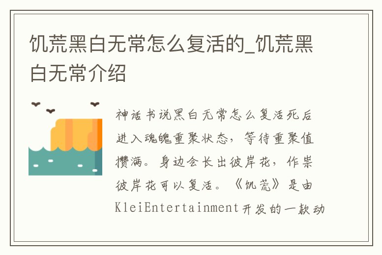 饑荒黑白無常怎么復(fù)活的_饑荒黑白無常介紹