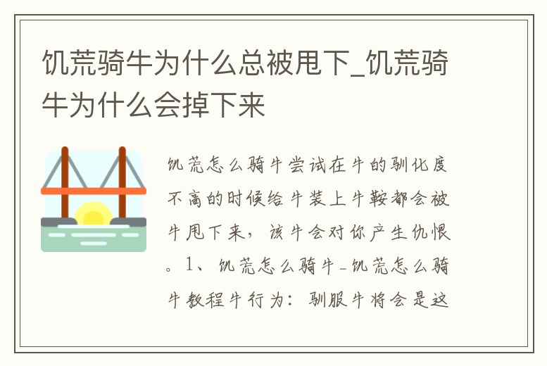 饑荒騎牛為什么總被甩下_饑荒騎牛為什么會掉下來