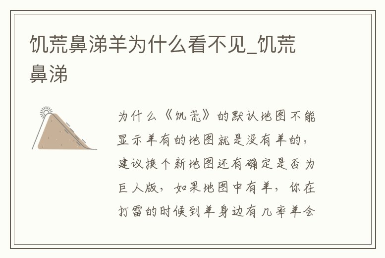 饑荒鼻涕羊為什么看不見_饑荒 鼻涕