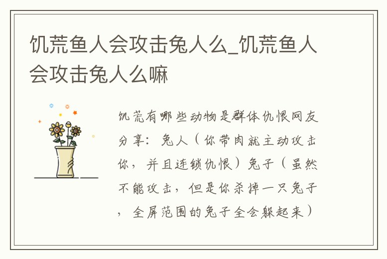 饑荒魚人會攻擊兔人么_饑荒魚人會攻擊兔人么嘛