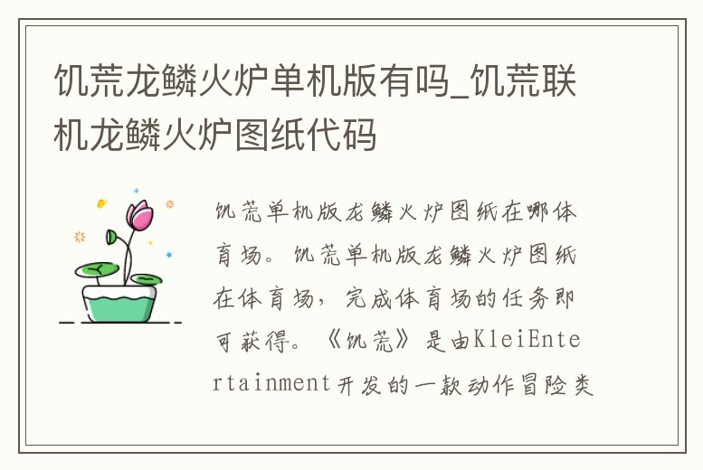 體育場。饑荒單機版龍鱗火爐圖紙在體育場,完成體育場的任務即可獲得。《饑荒》是由KleiEntertainment開發的一款動作冒險類求生游戲,于2013年4月23日在PC上發行,2015年7月9日在iOS發布口袋版。