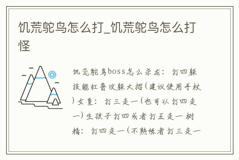 饑荒鴕鳥怎么打_饑荒鴕鳥怎么打怪