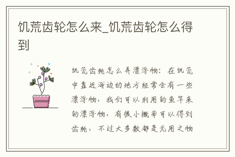 漂浮物:在饑荒中靠近海邊的地方經(jīng)常會有一些漂浮物,我們可以利用釣魚竿來釣漂浮物,有很小概率可以得到齒輪,不過大多數(shù)都是無用之物。