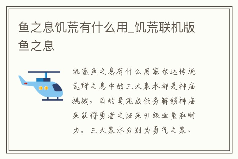 饑荒魚(yú)之息有什么用
