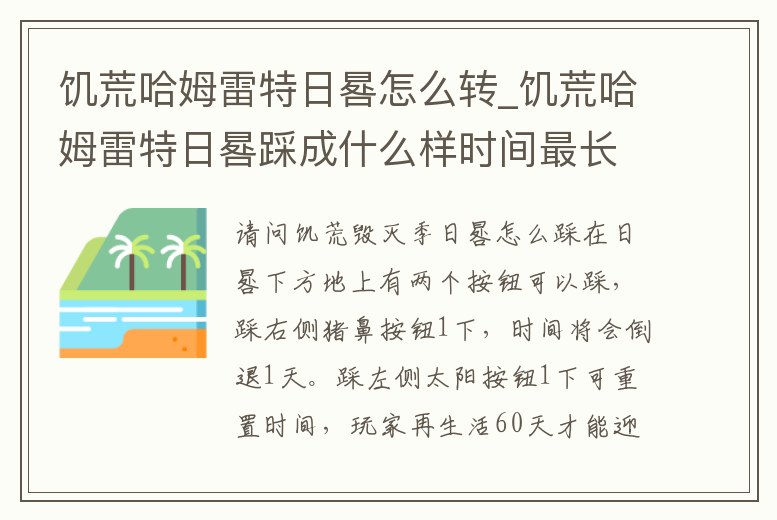 在日晷下方地上有兩個按鈕可以踩,踩右側豬鼻按鈕1下,時間將會倒退1天,舉例說饑荒61日進入毀滅季,踩豬鼻1下時間倒退到第60天,1天后毀滅季重新來臨。5/6 當哈姆雷特世界已經進入毀滅季時,踩左側太陽按鈕1下可重置時間。