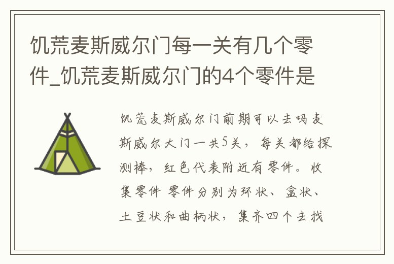 麥斯威爾大門一共5關,每關都給探測棒,紅色代表附近有零件。收集零件 零件分別為環狀、盒狀、土豆狀和曲柄狀,集齊四個去找基座。插入基座 將找到的四個零件插入基座,木質傳送門完成。插入探測棒 將探測棒放入。