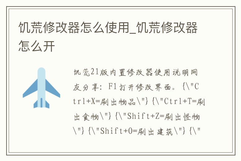 網友分享:F1打開修改界面。{"Ctrl + X = 刷出物品"} {"Ctrl + T = 刷出食物"} {"Shift + Z = 刷出怪物"} {"Shift + O = 刷出建筑"} {"Alt + L = 刷出魔法物品"} {"Shift + X = 在地上刷出物品} {"S。
