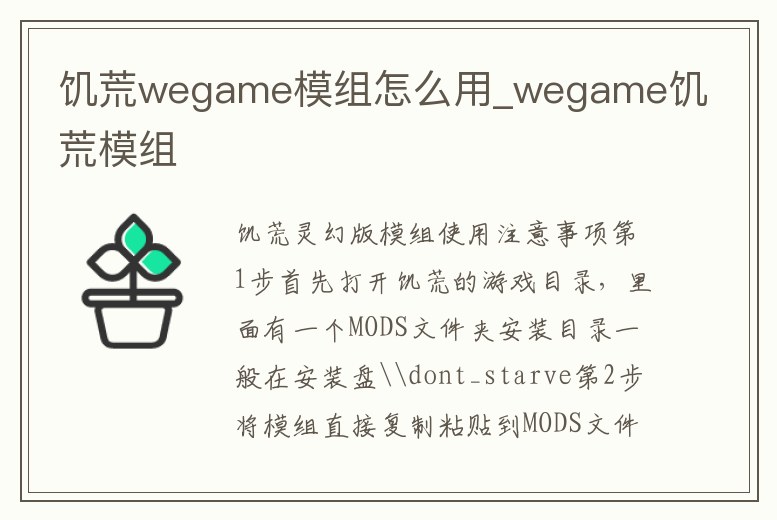 第1步 首先打開饑荒的游戲目錄,里面有一個MODS文件夾 安裝目錄一般在安裝盤\dont_starve 第2步 將模組直接復制粘貼到MODS文件夾里。注意:不要使用中文 第3步 點擊模組按鈕,模組按鈕就是MODS按鈕。沒有MODS按鈕的版本是。
