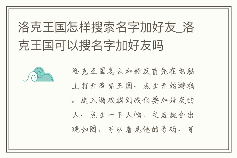 洛克王國怎樣搜索名字加好友_洛克王國可以搜名字加好友嗎