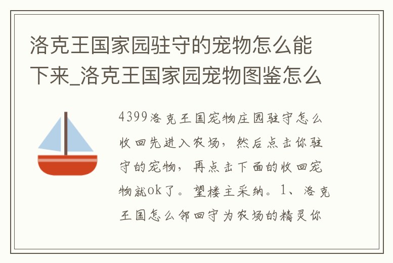 洛克王國(guó)家園駐守的寵物怎么能下來(lái)_洛克王國(guó)家園寵物圖鑒怎么弄