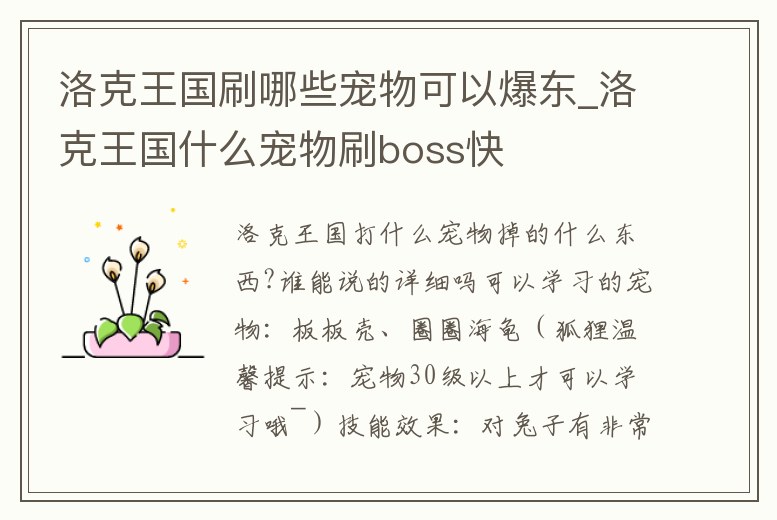 洛克王國刷哪些寵物可以爆東_洛克王國什么寵物刷boss快