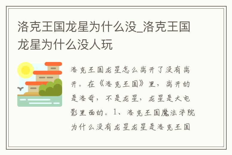 1、洛克王國魔法學院為什么沒有龍星