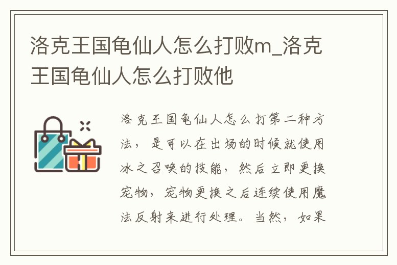 洛克王國龜仙人怎么打敗m_洛克王國龜仙人怎么打敗他