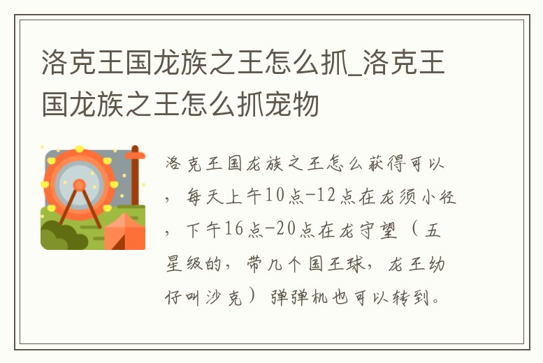 洛克王國龍族之王怎么抓_洛克王國龍族之王怎么抓寵物